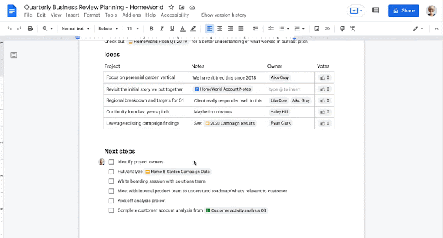 Even better is that smart chips can be viewed within a resizable hover box, letting users read and scan documents, proposals and lists without leaving their original document. They can also be used to quickly pull up project management tables, meeting templates, and so much more, all of which is auto-populated with smart tags. The expansion of the smart chip functionality offers even more flexibility for users without learning a brand new concept or process, making it easier to adopt and use with no barriers to entry.